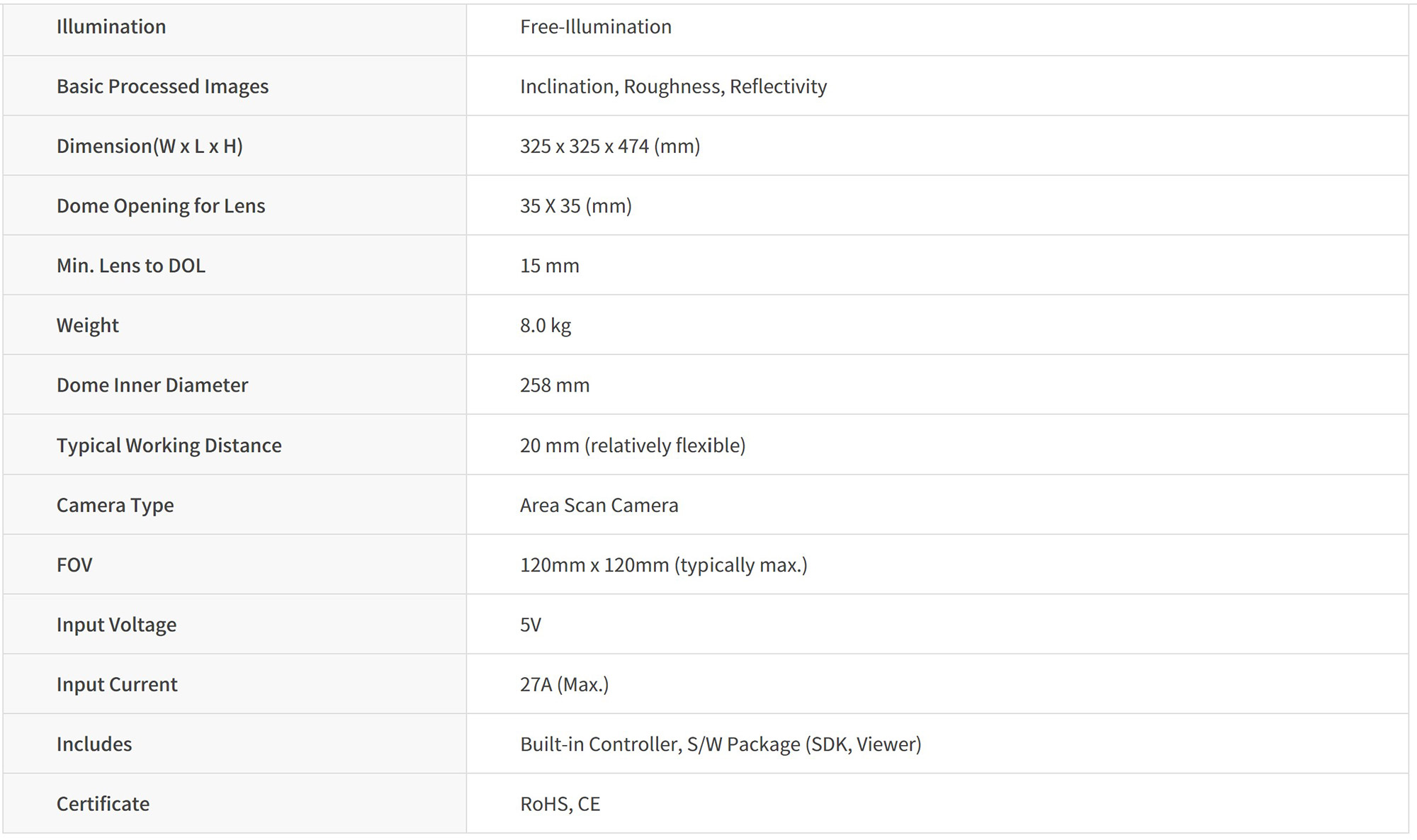 ระบบแสงพิเศษที่มีทั้ง Dome Light และ Coaxial Light ในตัวเหมาะสำหรับพื้นผิวที่มีความมันวาวสูง